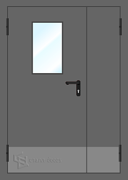 Полуторная техническая дверь с прямоугольным остеклением с отбойником ДМО-2